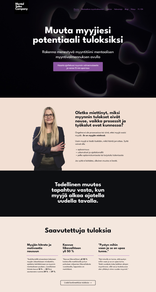 Työskentely yhdessä oli todella sujuvaa. Marjut kertoi selkeästi, miten projekti etenee ja millaisia tietoja hän minulta sivustoa varten tarvitsee. Pystyin koko projektin ajan keskittymään täysillä omiin töihini, kun sain valmiita ehdotuksia, jotka vastasivat toiveitani.