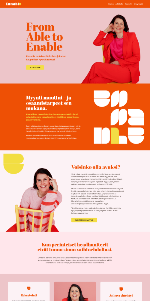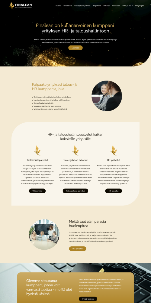Voit aloittaa halutessasi kevyellä peruspaketilla ja laajentaa sivuja myöhemmin tarpeen mukaan. Sivujen muokkaaminen onnistuu kätevästi myös itse, ja palveluun kuuluu aina käyttökoulutus ilman lisämaksua.